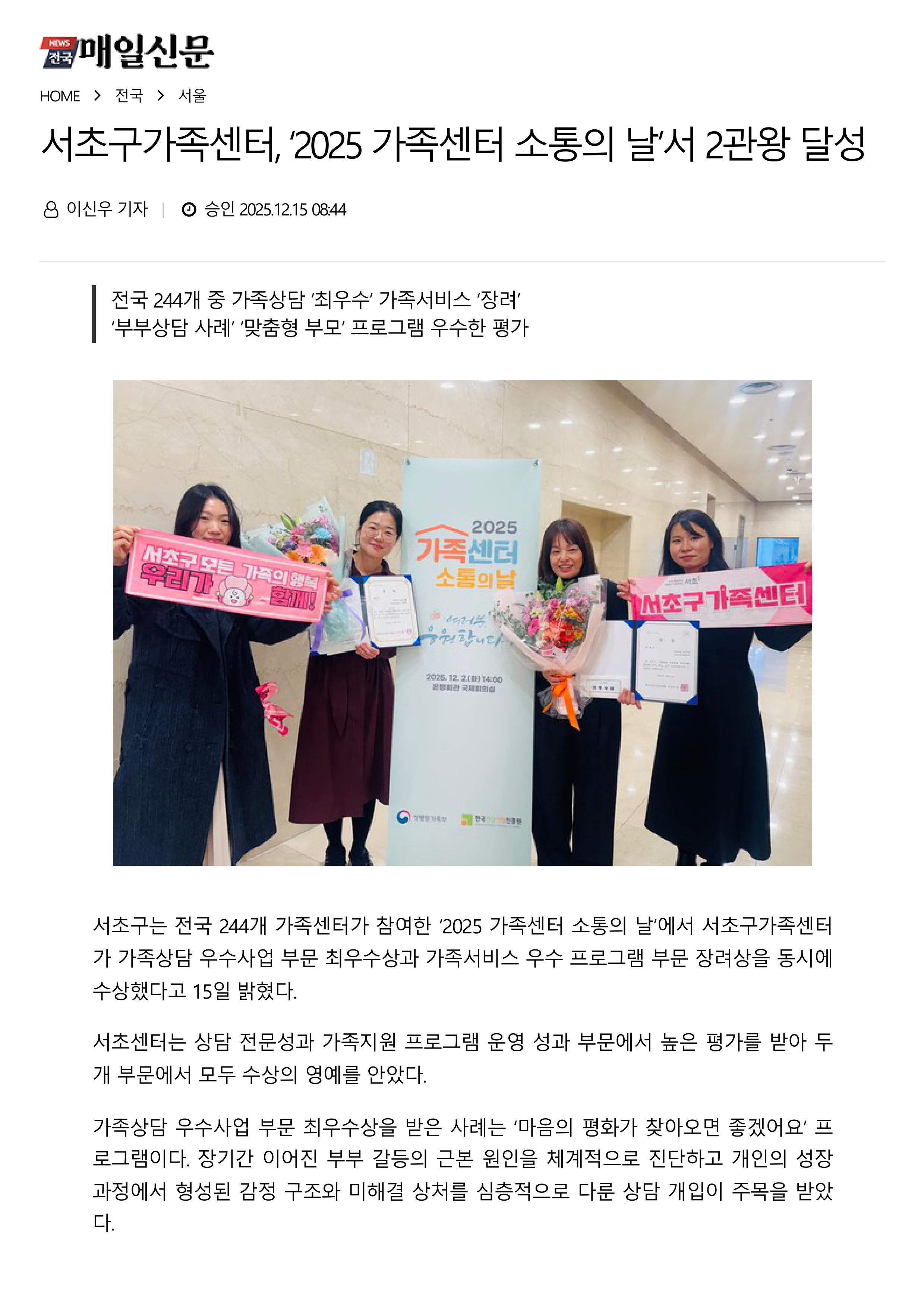 [Àü±¹¸ÅÀϽŹ®] ¼Ãʱ¸°¡Á·¼¾ÅÍ, ¡®2025 °¡Á·¼¾ÅÍ ¼ÒÅëÀÇ ³¯¡¯¼ 2°ü¿Õ ´Þ¼º