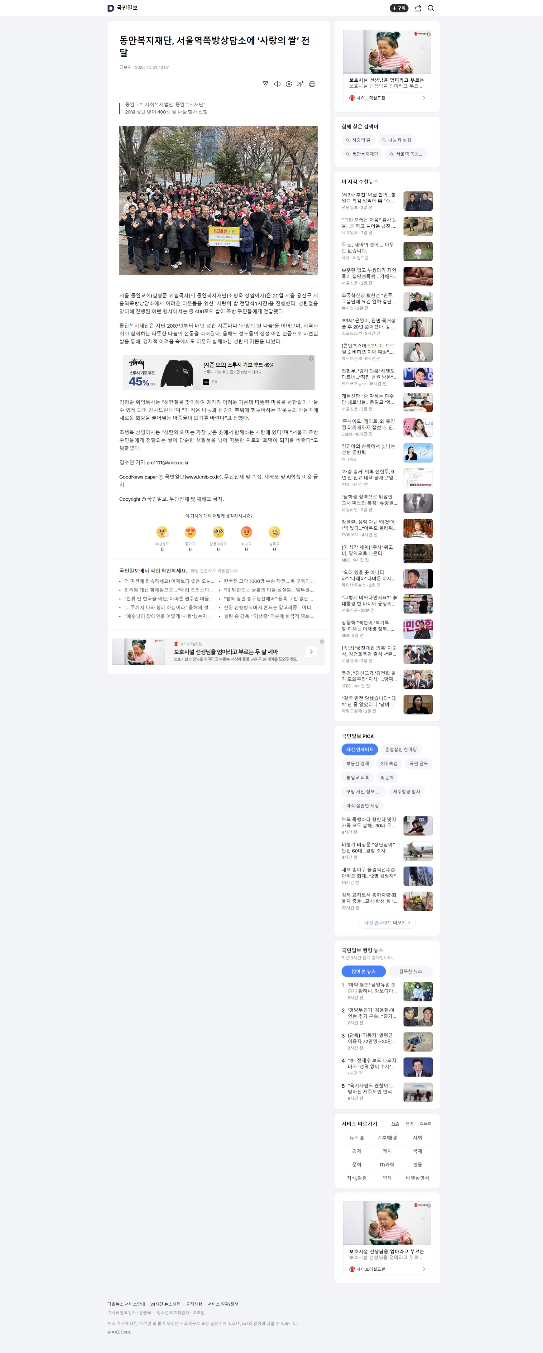 [±¹¹ÎÀϺ¸] µ¿¾Èº¹ÁöÀç´Ü, ¼¿ï¿ªÂʹæ»ó´ã¼Ò¿¡ ¡®»ç¶ûÀÇ ½Ò¡¯ Àü´Þ