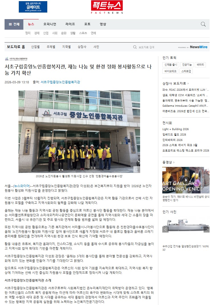 HOME > Ä¿¹Â´ÏƼ > È«º¸È°µ¿| Á¦¸ñ | [ÆÑÆ®´º½º] ¼Ãʱ¸¸³Áß¾Ó³ëÀÎÁ¾ÇÕº¹Áö°ü, Àç´É ³ª´® ¹× ȯ°æ Á¤È ºÀ»çȰµ¿À¸·Î ³ª´® °¡Ä¡ È®»ê | ||