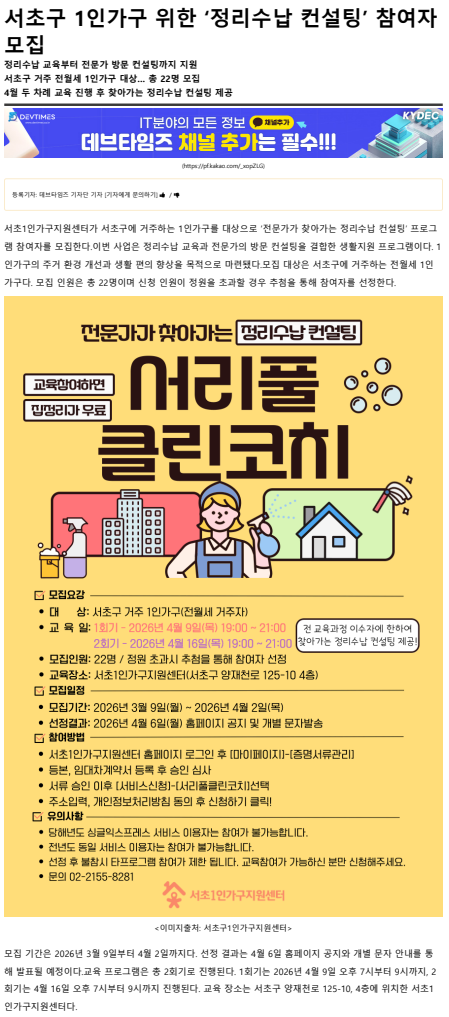 [µ¥ºêŸÀÓÁî] ¼Ãʱ¸ 1Àΰ¡±¸ À§ÇÑ 'Á¤¸®¼ö³³ ÄÁ¼³ÆÃ' Âü¿©ÀÚ ¸ðÁý