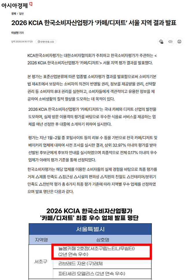 [¾Æ½Ã¾Æ°æÁ¦] 2026 KCIA Çѱ¹¼ÒºñÀÚ»ê¾÷Æò°¡ ¡®Ä«Æä/µðÀúÆ®¡¯ ¼¿ï Áö¿ª °á°ú ¹ßÇ¥