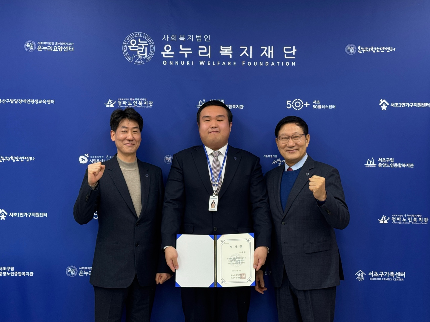 | ³»¿ë | ÀÏÀÚ : 2026³â 1¿ù 30ÀÏ(±Ý) Àå¼Ò : ¹ýÀλ繫ó ¿Â´©¸®º¹ÁöÀç´Ü¿¡¼´Â 26³â 1¿ù, ½Ã¿ë°è¾à Á¾·á¿¡ µû¸¥ ½Å±Ôä¿ë ¹× ½ÂÁø ÀÓ¸í½ÄÀ» ÁøÇàÇÏ¿´½À´Ï´Ù. *½ÂÁø - ºÏ¼¿ïÀå¾ÖÀκ¸È£ÀÛ¾÷½Ã¼³ ºÎÀå ÀÌ¿µÈ¯ *½Ã¿ë°è¾à Á¾·á¿¡ µû¸¥ ½Å±Ôä¿ë - ºÏ¼¿ïÀå¾ÖÀκ¸È£ÀÛ¾÷½Ã¼³ Á÷¾÷ÈÆ·Ã±³»ç ³ëÅÂÇå - ¼Ãʱ¸°¡Á·¼¾ÅÍ ÆÀ¿ø ³²±Ã¹Î¿µ - ¼Ãʱ¸°¡Á·¼¾ÅÍ ÆÀ¿ø ÇÑÈ¿¸² |