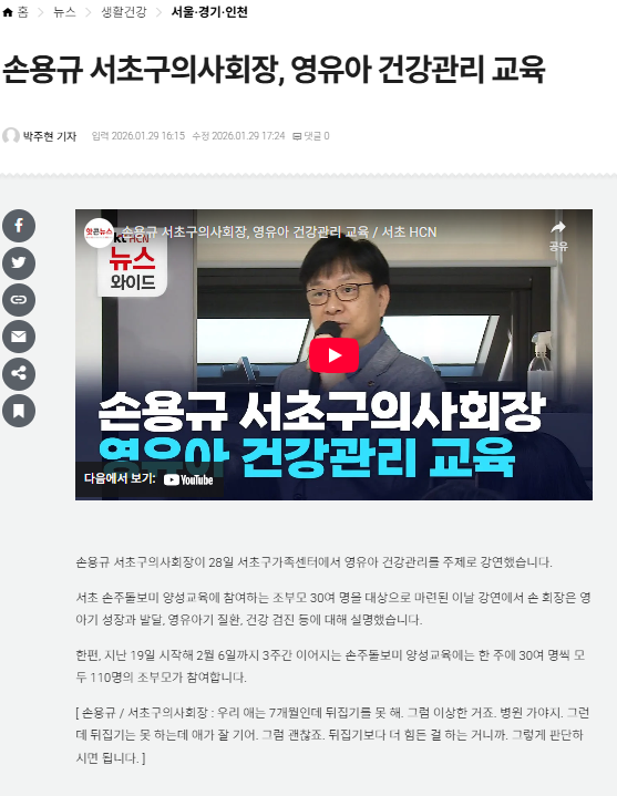 [HCN]¼Õ¿ë±Ô ¼Ãʱ¸ÀÇ»çȸÀå, ¿µÀ¯¾Æ °Ç°°ü¸® ±³À°