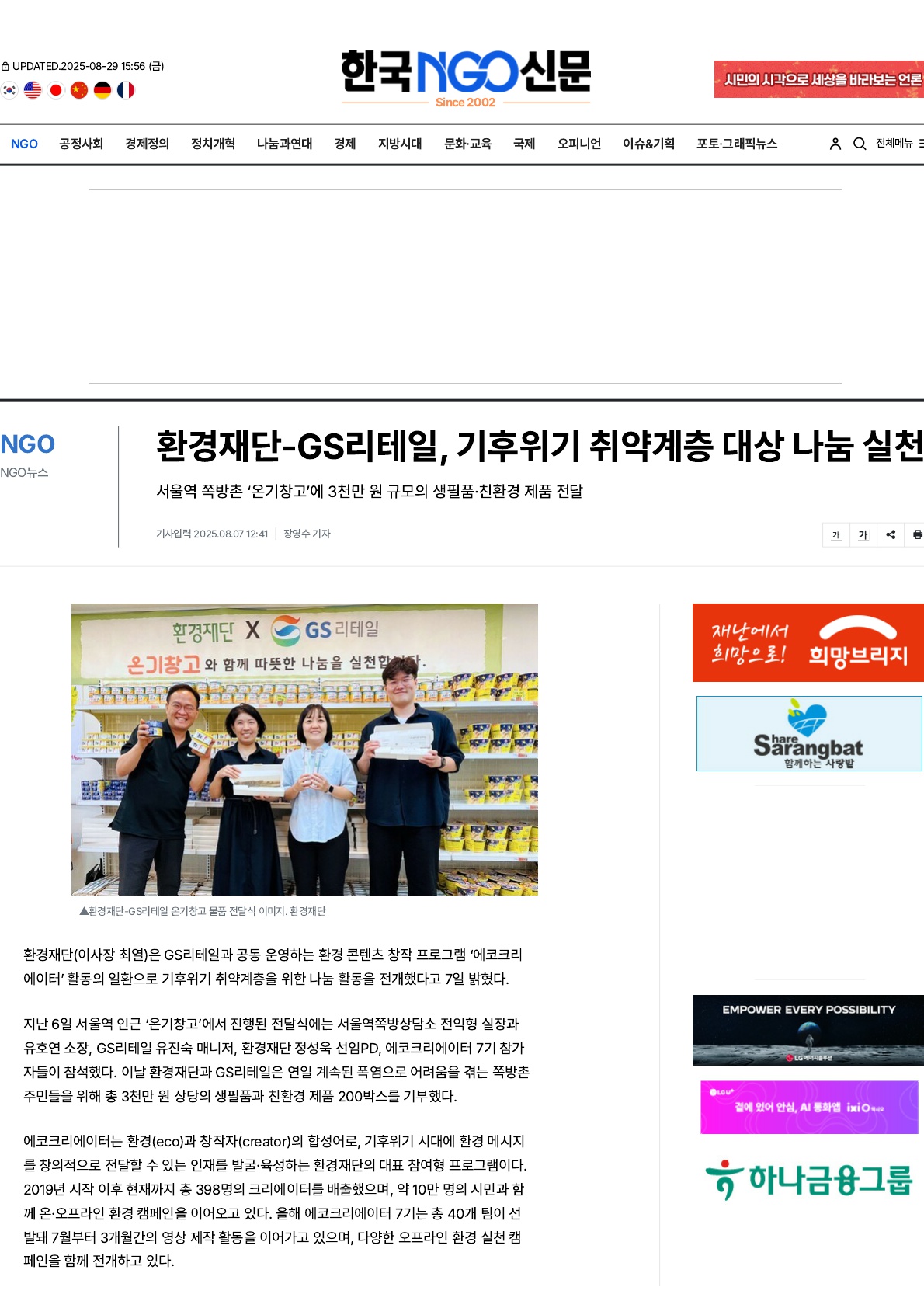 [Çѱ¹NGO½Å¹®] ȯ°æÀç´Ü-GS¸®Å×ÀÏ, ±âÈÄÀ§±â Ãë¾à°èÃþ ´ë»ó ³ª´® ½Çõ